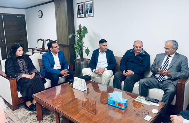 During the meeting, Dr. Parastar shared insights and delivered a presentation on cutting-edge agronomic techniques and bio-fertilizers aimed at improving crop yields and soil performance. He was accompanied by Mr. Sarmad Hussain, Communications Manage, Finanzgruppe Deutscher Sparkassen- und Giroverband (DSGV) Germany. The meeting was facilitated by Dr. Aftab Ahmad, President of the National Academy of Sciences of Young Scientists (NAYS) and Dr. Kubra Mehmood, Founder and CEO Planet Bio Labs.
